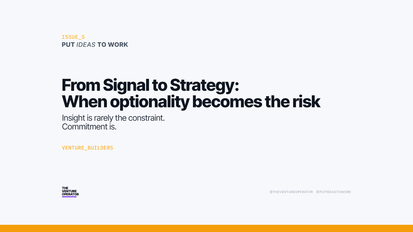 Effective early stage venture building relies on distinguishing real signals from noise. This discipline is critical as pursuing the wrong signals misdirects resources. More critically, not making a decision and chasing every signal concurrently will fragment focus and exhaust a venture’s limited capacity.