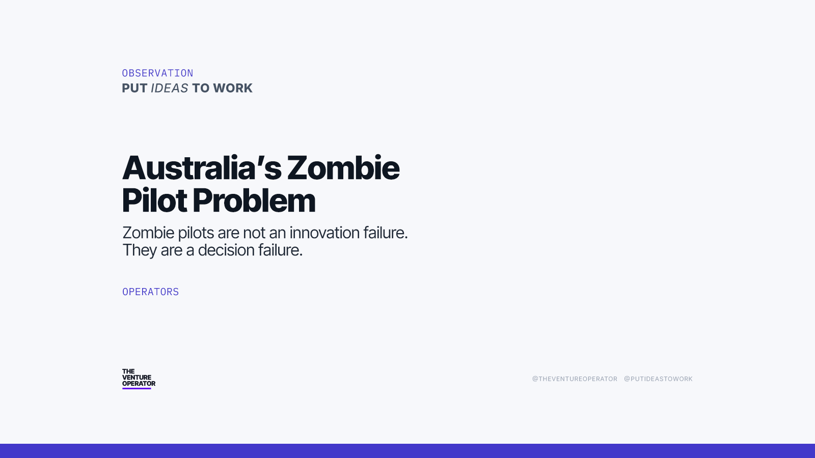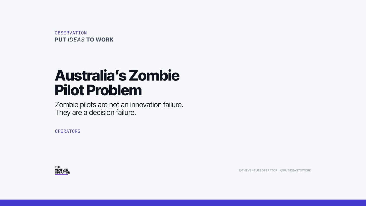 Australia may not necessarily have an innovation problem, but there are indications of a decision problem. And until continuation has to be actively re-earned, zombie pilots will remain a rational outcome of an irrational system.