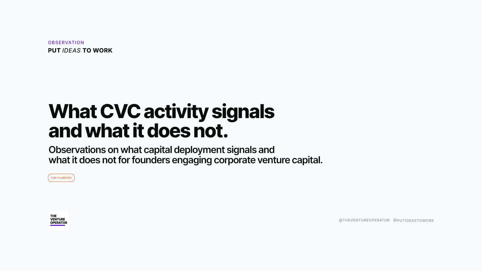 Observations on what capital deployment signals and what it does not for founders engaging corporate venture capital.